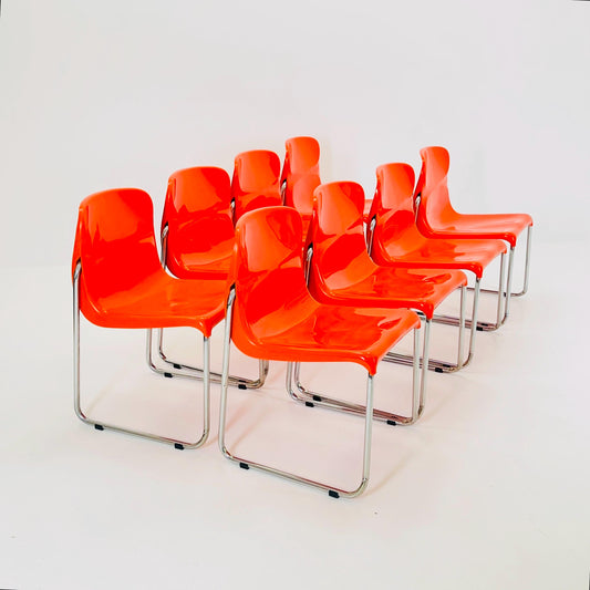 Set of 8 Mid Century Space Age Orange Chair by EKA Möbel, Germany 1970s