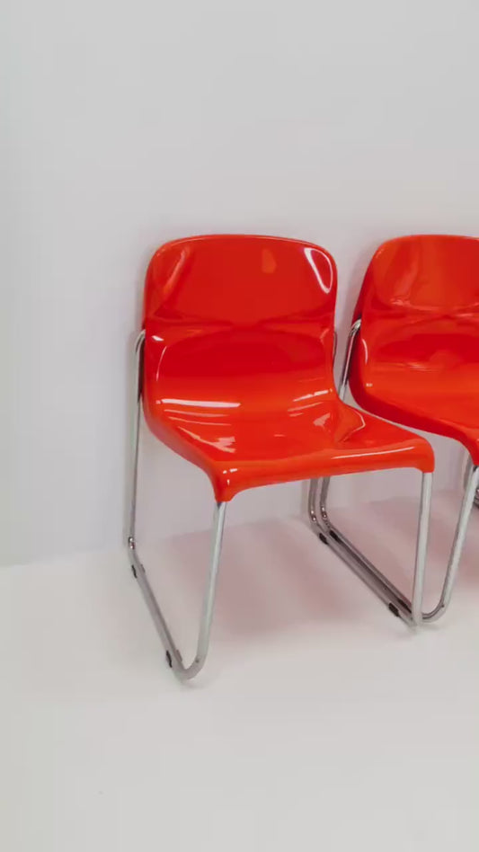 Set of 4 Mid Century Space Age Orange Chair by EKA Möbel, Germany 1970s