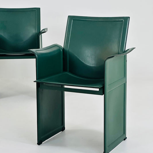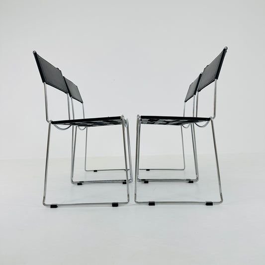 Set of 4 Italian Giandomenico Belotti chairs in black leather 1980s.