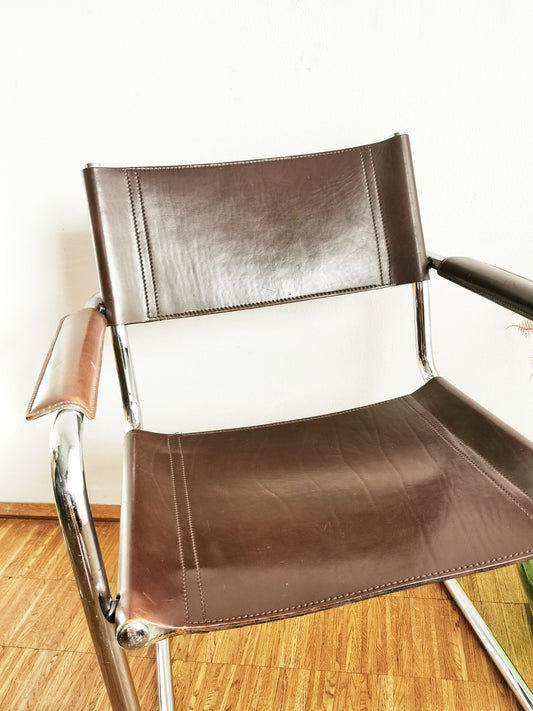 1 of 2 Mid-Century brown Vintage S33 dark brown chair from Mart Stam by Fasem Italy 1980er