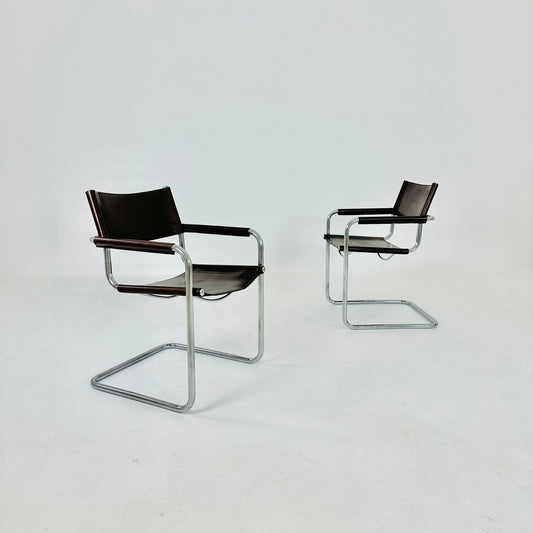 Set of 2 vintage B34 dark chocolate Color leather cantilevered chairs by Mart Stam for Jox Interni italy 1980s