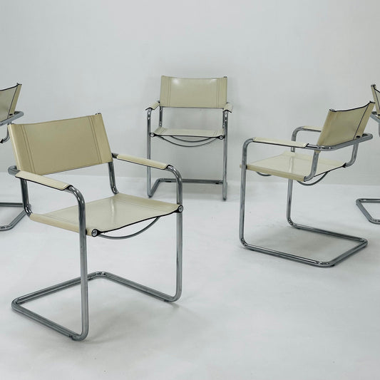 Set of 6 Model MG5 Centro Studi dining white leather chairs by Mart Stam & Marcel Breuer for Matteo Grassi, 1980s