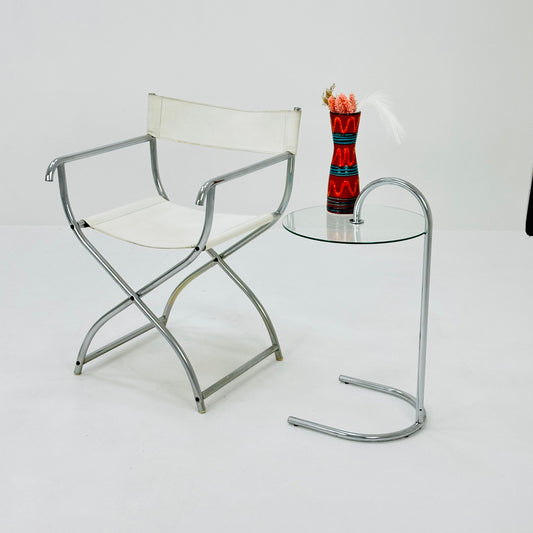 set of 2 mid -Century Modern Arrben director's chair in chrome and white leather 1980s