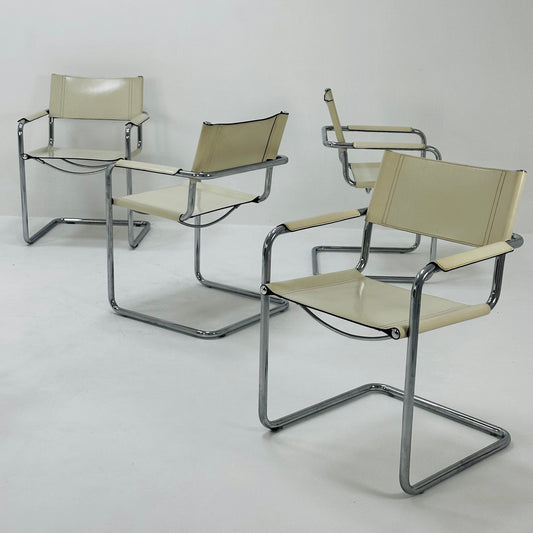 Set of 4 Bauhaus mid century Model MG5 Centro Studi chairs by Mart Stam & Marcel Breuer for Matteo Grassi, 1970s Italy