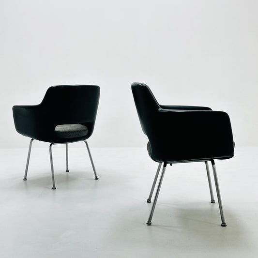 set of 2 Mid century Olli Mannermaa black Leather Kilta armchair by Eugen Schmidt & Cassina Martela 1970s