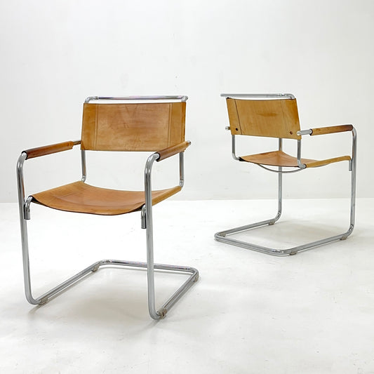 set of mid century S34 shoko braun Saddle Leather Dining Chairs by Mart Stam & Marcel Breuer italy 1980sRegular price €1.100,00 EURRegular priceUnit price / per-