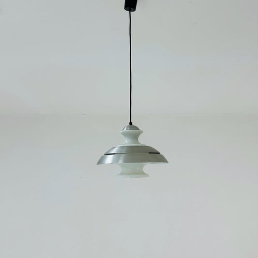 Scandinavian Pendant lamp from the 1970s in brushed aluminum and opaline glass.
