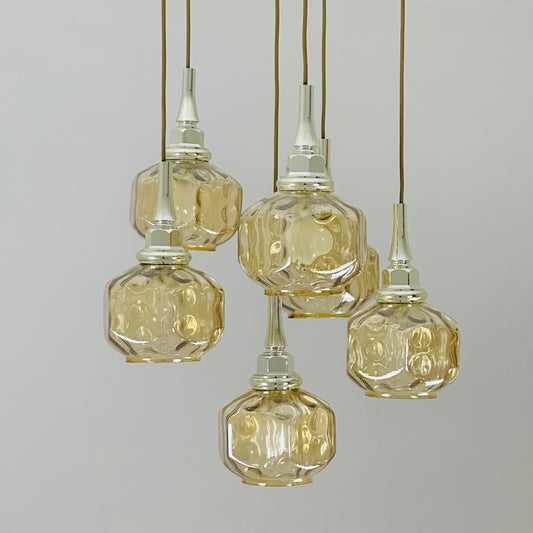 Mid century amber glass waterfall long chandelier, 1970s Germany