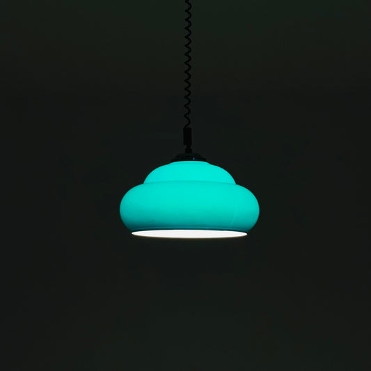 1 of 2 Mid Century Space Age Pendant Light / Green Vintage Lamp Italy 1970s