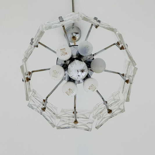 Mid-Century Crystal Glass & Chrome Pendant Lamp from Kinkeldey, 1960s