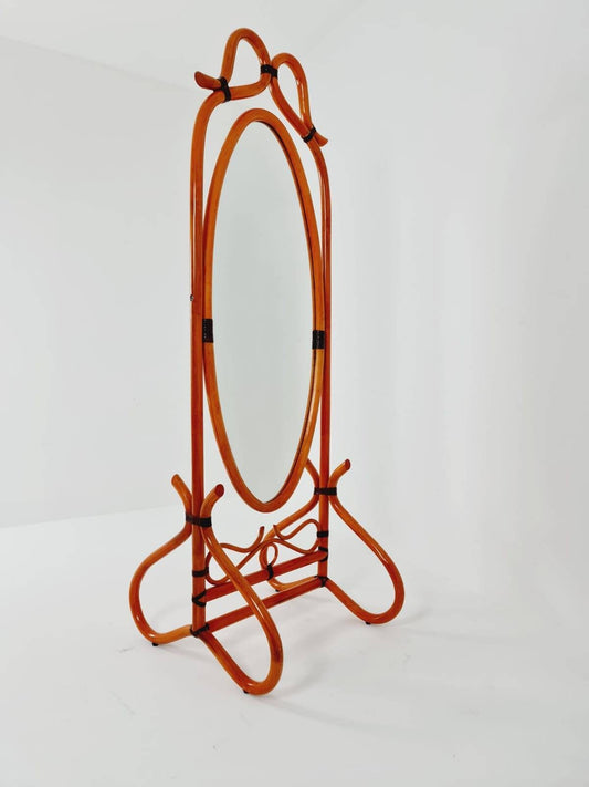 Mid-Century French Bentwood and Rattan Floor Mirror 1900s