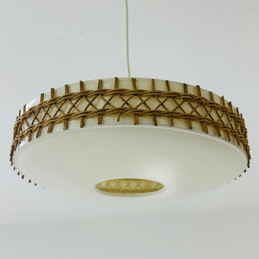 Mid century Round Plastic and Wicker pendant Lamp, Germany, 1960s