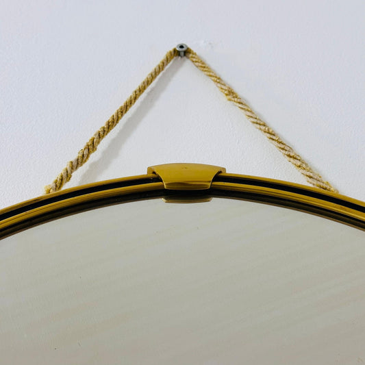 Small Midcentury Brass wall mirror with braided hanging strap by west Spiegel Germany 1960s