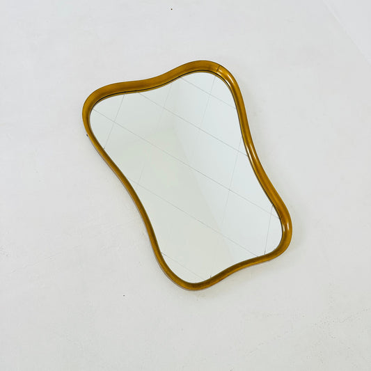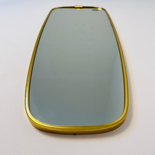 Mid Century XXL asymmetric German brass Original kidney wall mirror from the 60s
