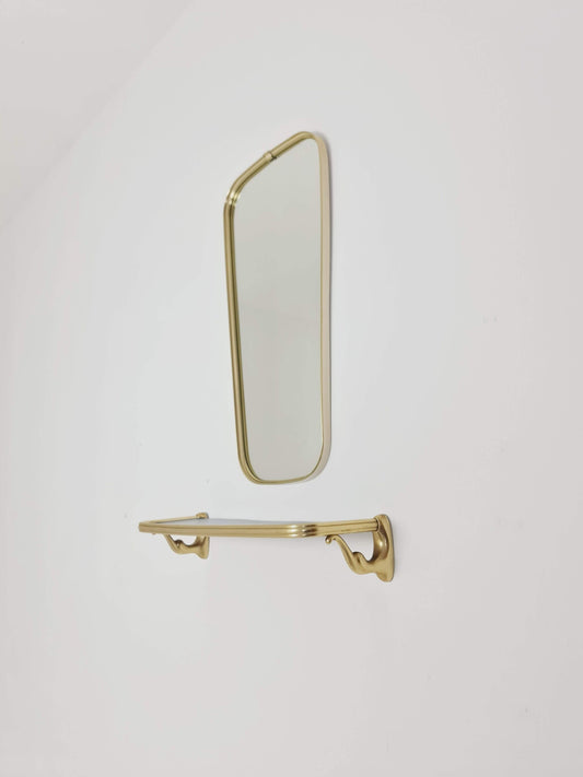 Mid-century Brass & Black Frame Minimalist Mirror and shelf , 1950s, Germany
