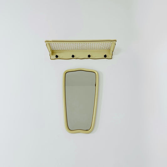 Mid-century wooden Frame Minimalist Mirror and shelf , 1950s, Germany by Mann Möbel