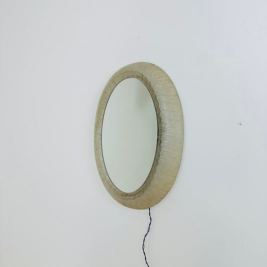 Mid century oval mirror with lighting & plexiglass edge 1960s