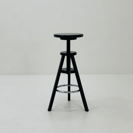 1of 2 solid wood adjustable screw Ikea vintage black bar stool 1990s