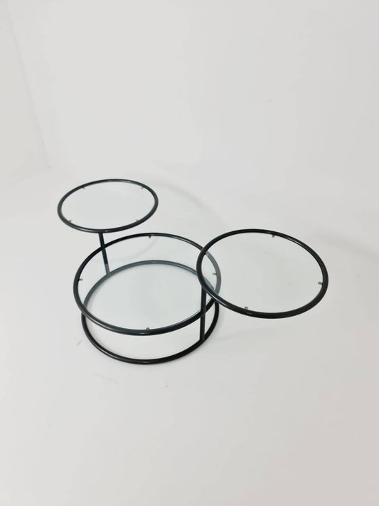 chrome and colorful glass coffee table with 3 swiveling tiers by Kare design