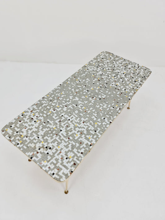 Unique mosaic & solid brass coffee table by Berthold Muller, 1950s
