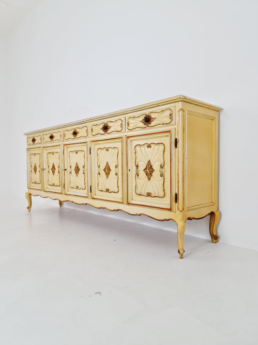 Super rare antique French Giant Venetian white lacquered sideboard Louis XIV