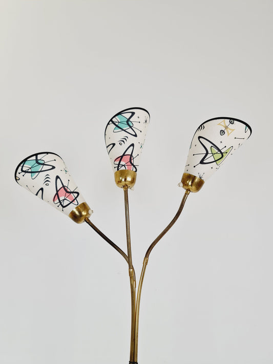 German Modern three flex arms brass floor lamp, tütenlampe, 1950s