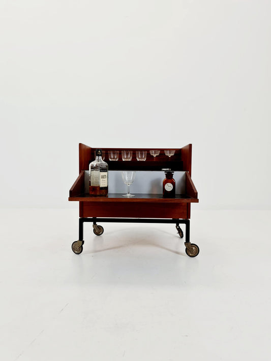 Super rare German mid century bar cart trolley in teak & Metal, By Else 1960s