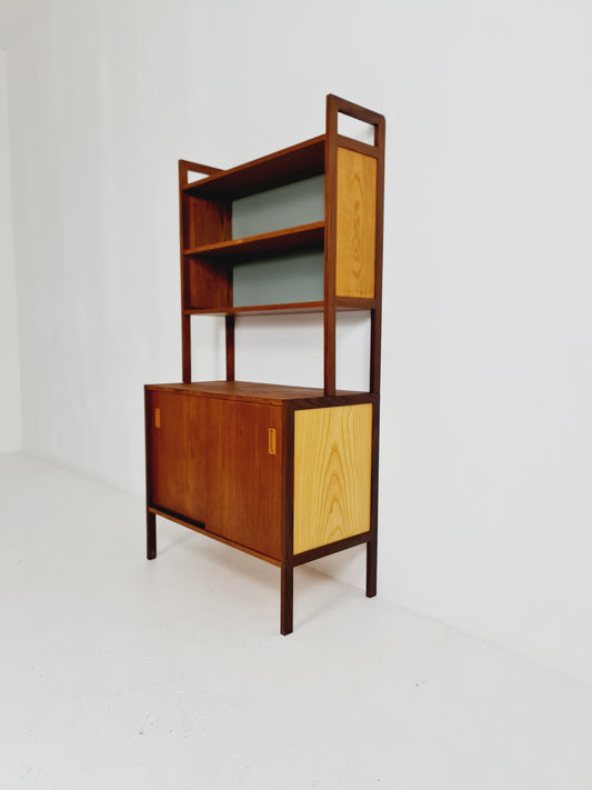 Mid-century Danish vintage teak & beech 2 parts bookshelf cabinet by Gillis Lundgren, 1960s