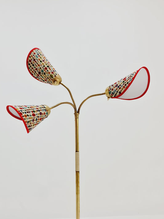 German Modern three flex arms brass floor lamp, tütenlampe, 1950s