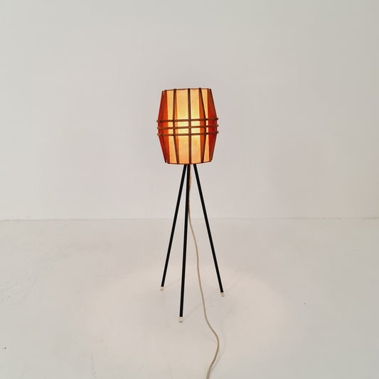 Mid century German tripod floor lamp pine wood veneer & metal, 1970s