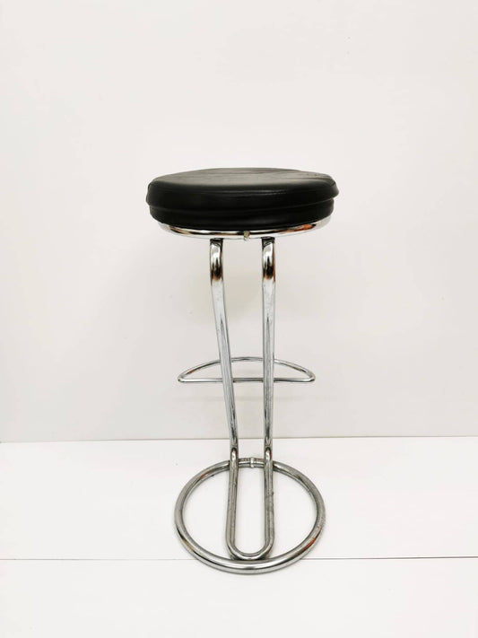 Mid-Century Modern Leather and Chrome Bar Stool 1980s Italy