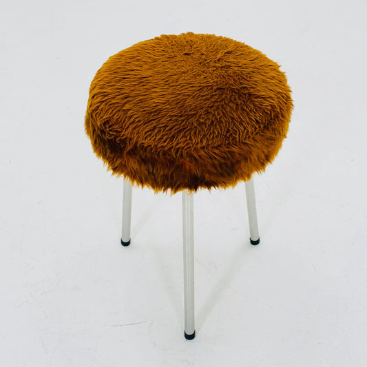 Mid-Century Plush Tripod Stool by VEB Elektroinstallation Deutschneudorf, 1960s Germany