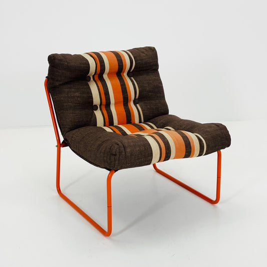Mid-Century Pixi Lounge Chair by Gillis Lundgren for IKEA, 1970s – Retro Brown & Orange Striped Chair with Tubular Frame