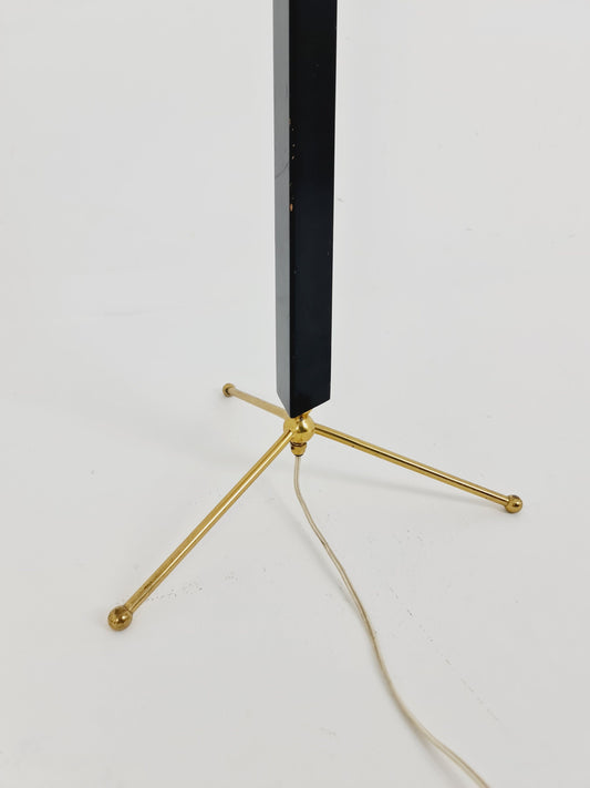Midcentury floor lamp brass and black wood Scandinavian Swedish from the 1950s By E. Hansson & Co., Malmö
