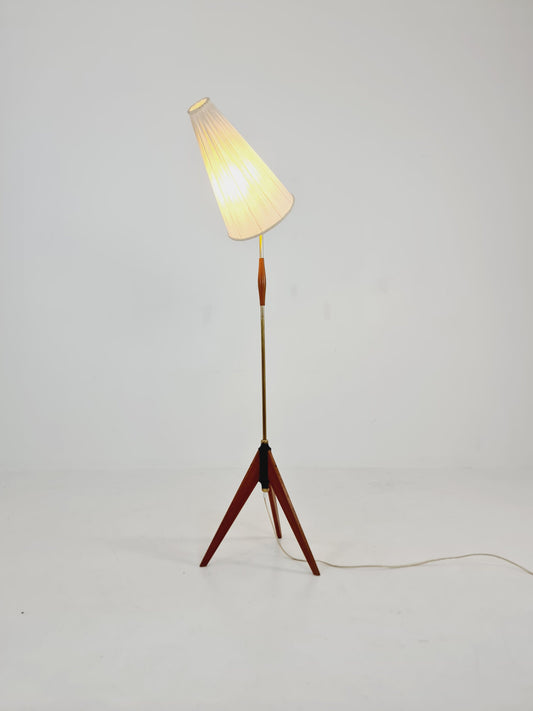Midcentury floor Tripod flex armlamp brass & Teak Scandinavian by Örsjö Armatur, 1960s