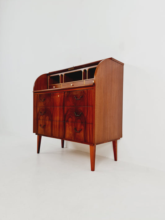 Midcentury vintage Roll-top desk Swedish secretary By Bröderna Gustafsson 1960s