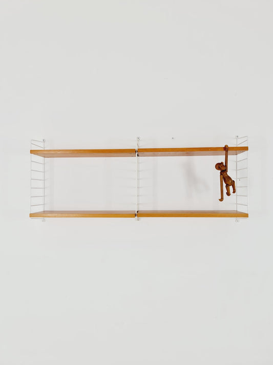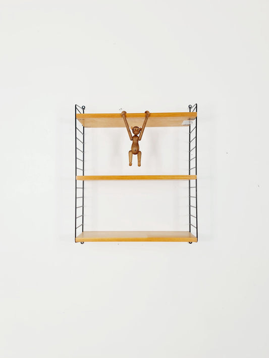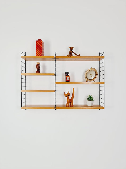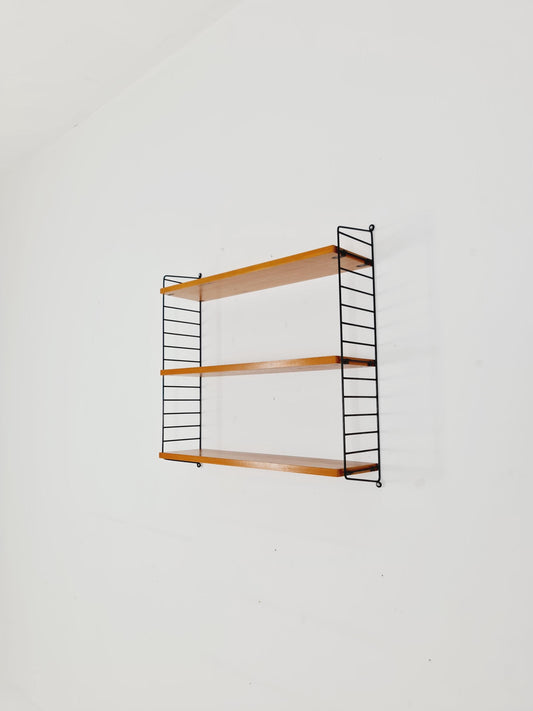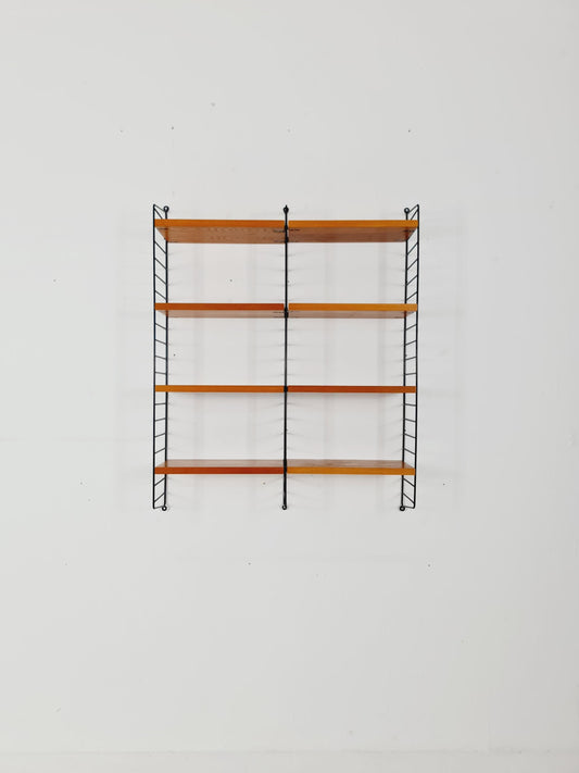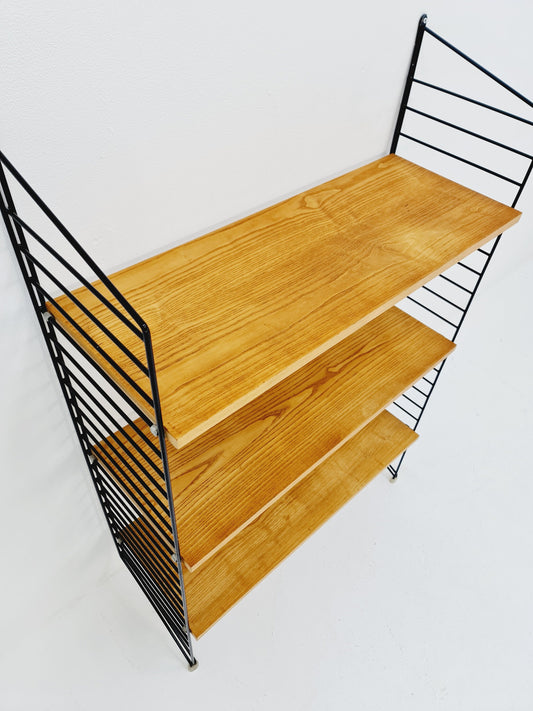Original MCM Ash wood shelving system - consists of Black lacquered metal ladders, from string Stockholm 1960s