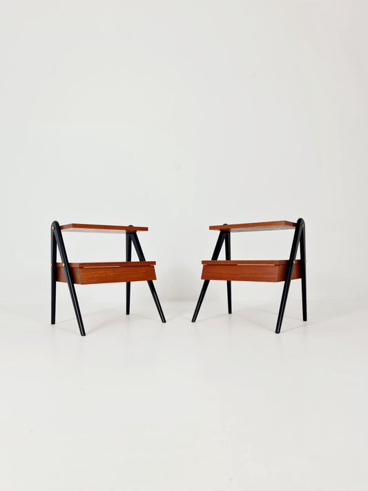 Pair Midcentury Carlström & Co Teak Vintage Side table/ Bedside table/ Night stand straight from the sixties