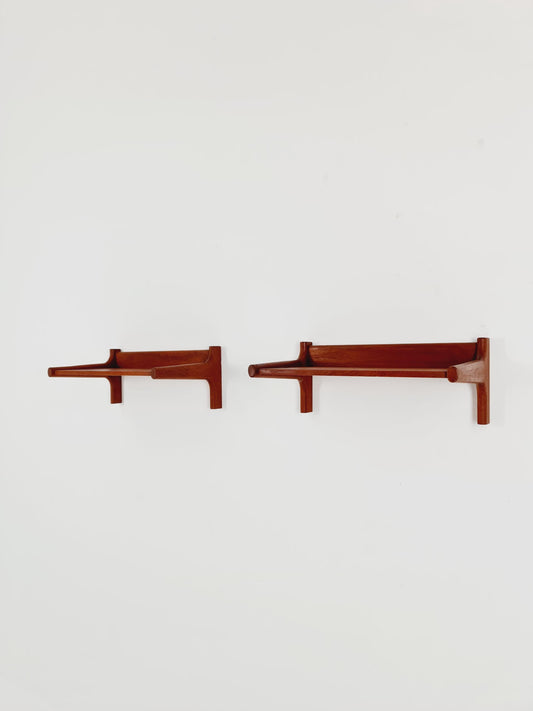 Pair of Big Danish teak floating hanging shelf, 1960s