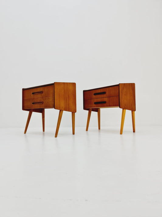 Rare big Midcentury Danish teak Vintage Side table/ Bedside table by Olholm Möbelfabrik, Denmark, 1960s, set of 2