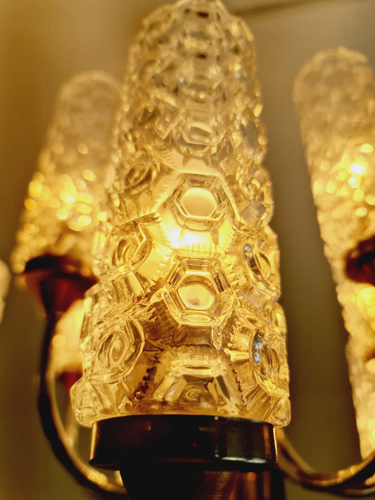 Rare Vintage Scandinavian chrome, teak & crystal pendant lamp, 1960s