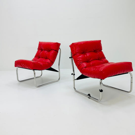 set of 2 Model Pixi red leather lounge chair by Gillis Lundgren for Ikea, 1970s