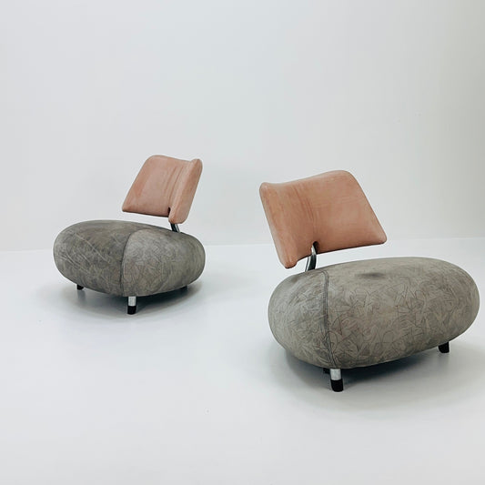 Set of 2 Mid century Orginal Leather Pallone lounge chairs by Roy de Scheemaker for Leolux, 1980s