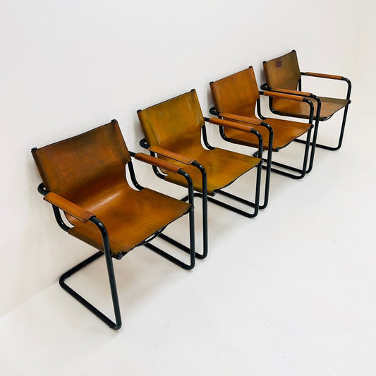 set of 4 Mid century MG5 Matteo Grassi visitor leather armchairs by Mart Stam Italy 1970s