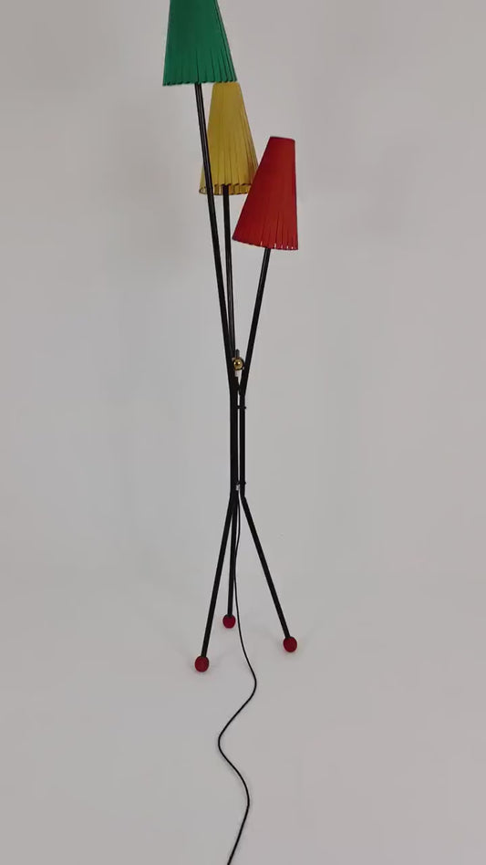 Tripod swedish vintage floor lamp in metal by Möller Armatur Eskilstuna MAE, 1950s