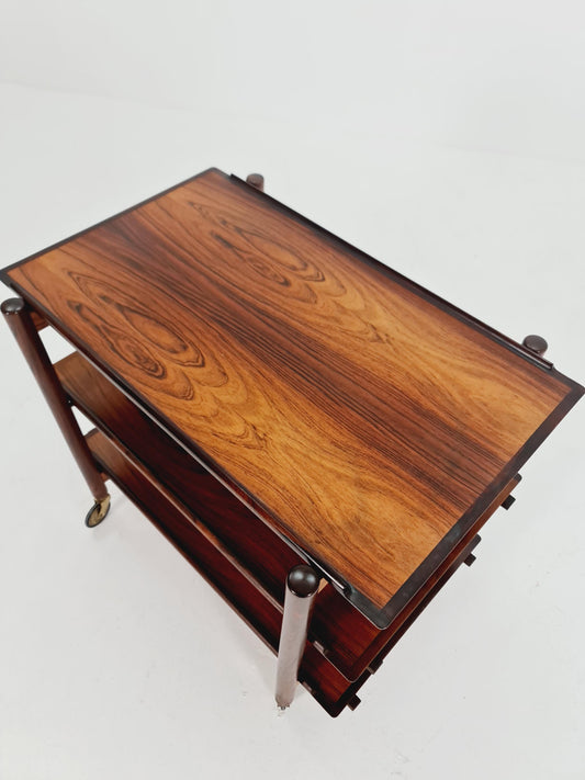 Vintage mid century danish trolley in solid Rose wood / bar cart By Poul Hundevad , 1960s