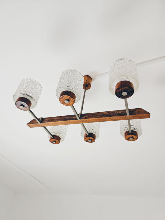 Vintage Scandinavian metal & glass pendant lamp, 1960s