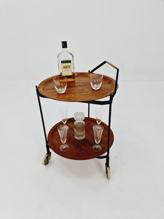 Vintage Swedish mid century Folding trolley bar cart in teak & metal by Äry, 1960s