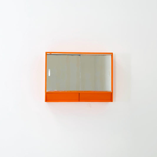 Vintage Space Age Orange Medical Cabinet with Mirror Sliding Door , Retro 1970s Germany