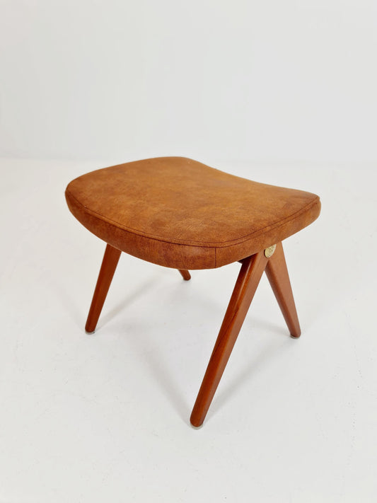 Vintage Swedish beech stool ottoman by Bengt Ruda for Nordiska Kompaniet , 1960s